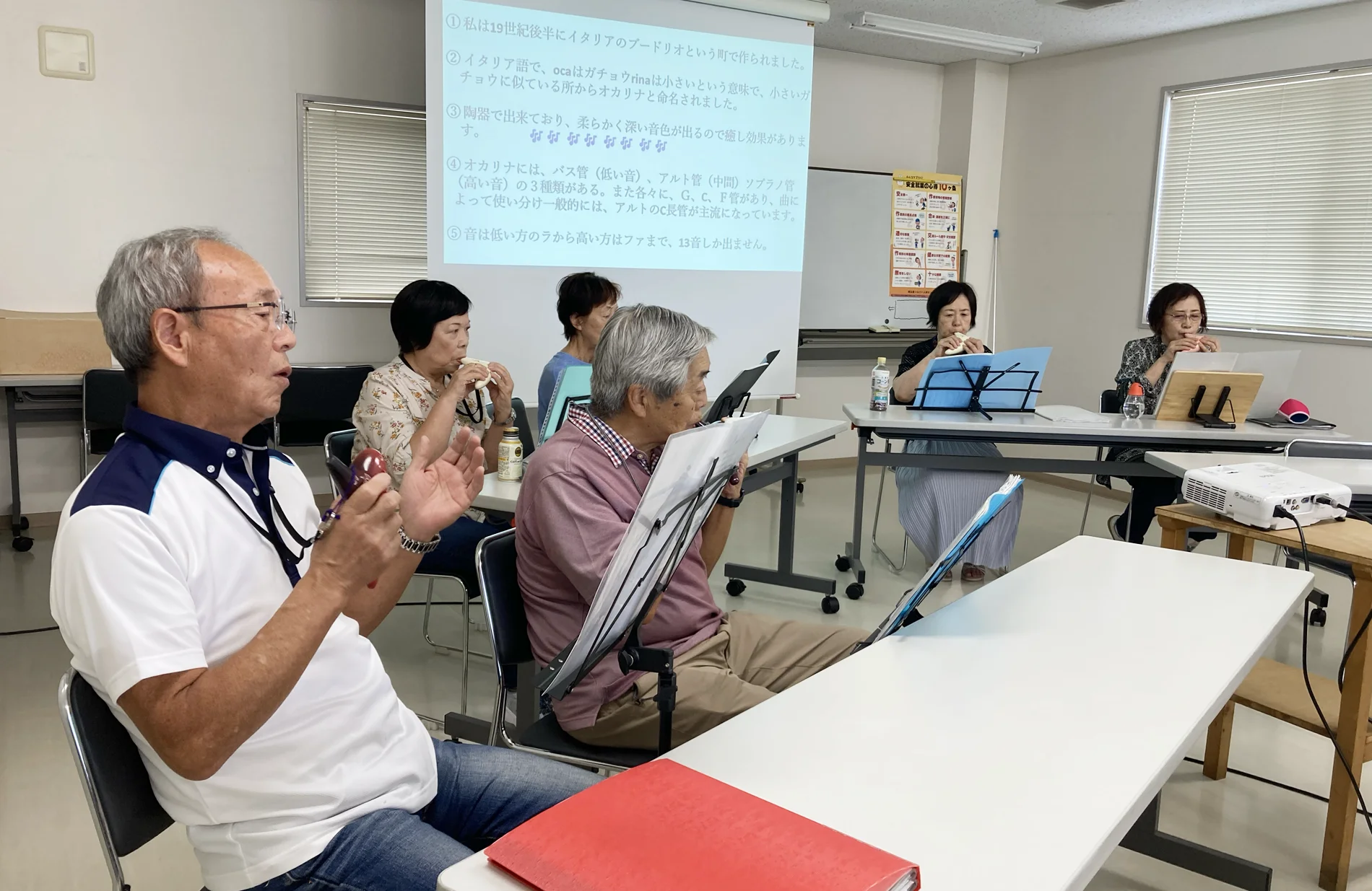 取材の前に、何曲か演奏を聞かせていただきました。どの曲もよく知っているメロディーなのに、澄んだオカリナの音が響くと、会場の空気がやわらかく包まれるような不思議な心地よさがありました。