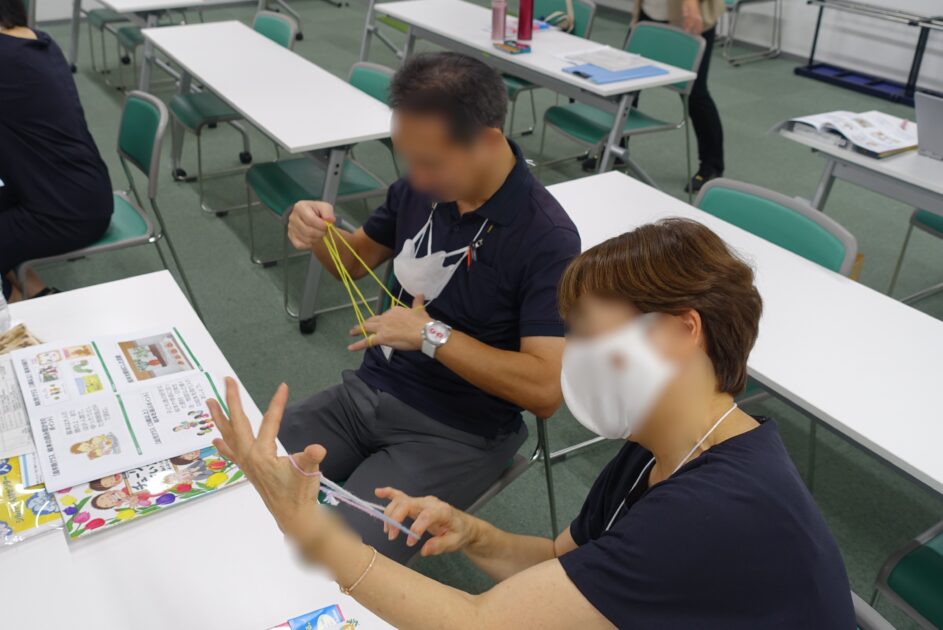 あやとりに「ここを取って、次はここ」と、楽しそうです。