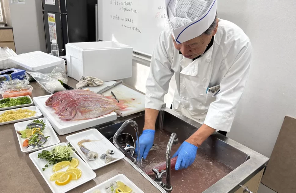 今回で41回目を迎えるこの教室は、2時間という限られた時間の中で、旬の魚を一尾まるごと捌き、盛り付けまで行う本格的な実践スタイルで人気を集めています。