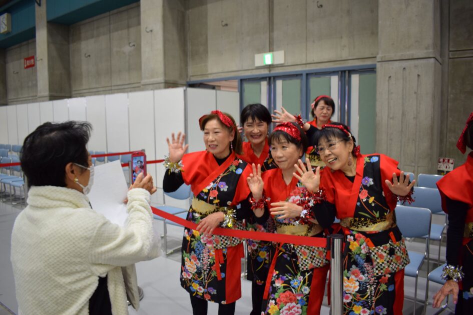 会場の皆さんと踊り、大盛況で終わることができホッとしました。閉会後の退出時「とても良かった!」「元気をもらいました!」と私たちの席にたくさんの方が声をかけてくださいました。私たちも立ち上がるとハイタッチや握手をしてくださる方も大勢いて、私たちアイドルになった気分!?本当に香川の方は温かい。私たちの演舞で皆さんが元気になる、そのようなことができて感無量です。