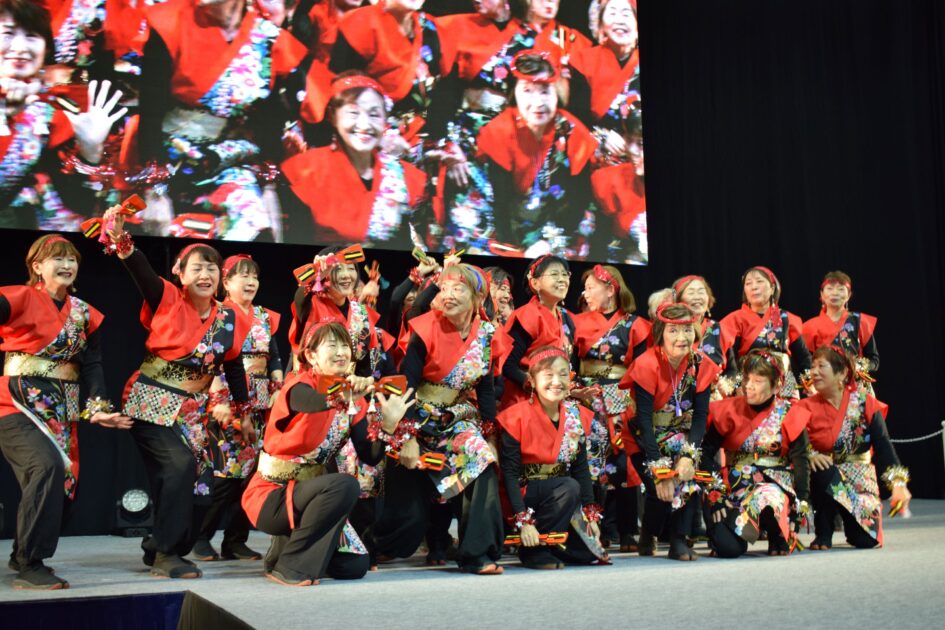 二曲「鳴子踊り和調」「相思草愛」を無事に踊ることができ、やり切ったという達成感でメンバー全員最高の笑顔になっていました。三曲目は会場の皆さんと一緒に総踊り「うらじゃ」を踊りました。「一緒に踊りましょう」と声をかけるとたくさんの方が参加し、会場を盛り上げてくださいました。本当に感動です。