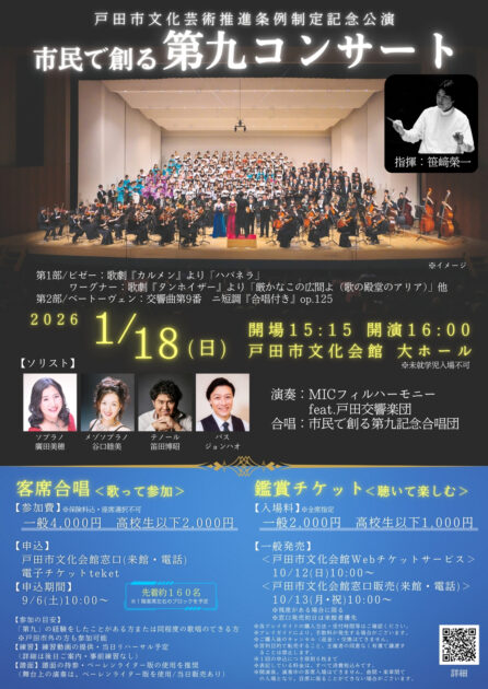 このコンサートは「市民で創る第九コンサート」と銘打って、戸田市の文化活動の一環として催行されました。 戸田市は令和7年4月に「戸田市文化芸術推進条例」が制定され、その第1回目のコンサートで市長も来賓として挨拶をされました。 チケットは完売となったようで市民の意識の高さを感じました。